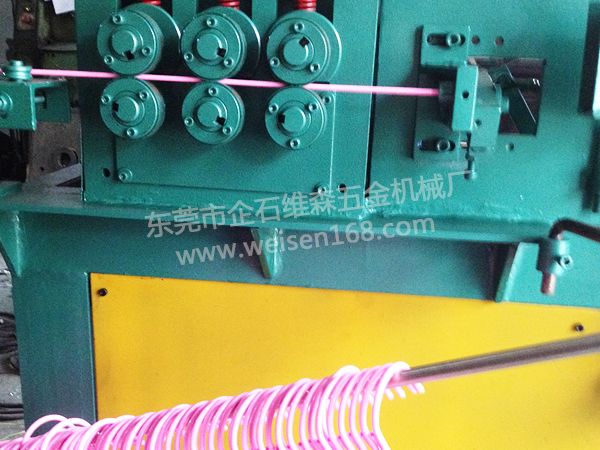 包胶线扭花衣架成型机 本机器为包胶线扭花衣架成型机,可以制造出各类不同形状和尺寸大小各异的衣架,涡轮转动,速度快,其产量为每分钟可以生产